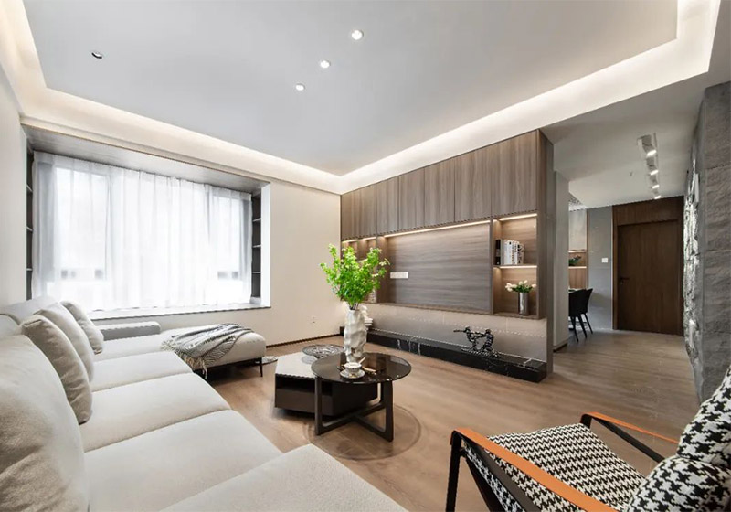 • 145㎡簡(jiǎn)約風(fēng)三人居 無主燈設(shè)計(jì)+仿石材真get
